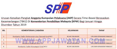 Pembantu tadbir (perkeranian atau operasi) gred n22 2. Kenaikan pangkat ibarat ganjaran kepada pekerja tidak kira dalam sektor awam mahupun swasta. Lampiran a sukatan peperiksaan kenaikan pangkat secara lantikan 1/7 ujian kemahiran untuk kenaikan pangkat secara lantikan (kpsl) terus ke skim perkhidmatan penolong akauntan jabatan akauntan negara malaysia. Ahli lembaga kenaikan pangkat atau lembaga rayuan kenaikan pangkat mengikut peraturan yang berkuat kuasa bagi perkhidmatan yang berkenaan. Tahniah kerana anda dinaikkan pangkat.